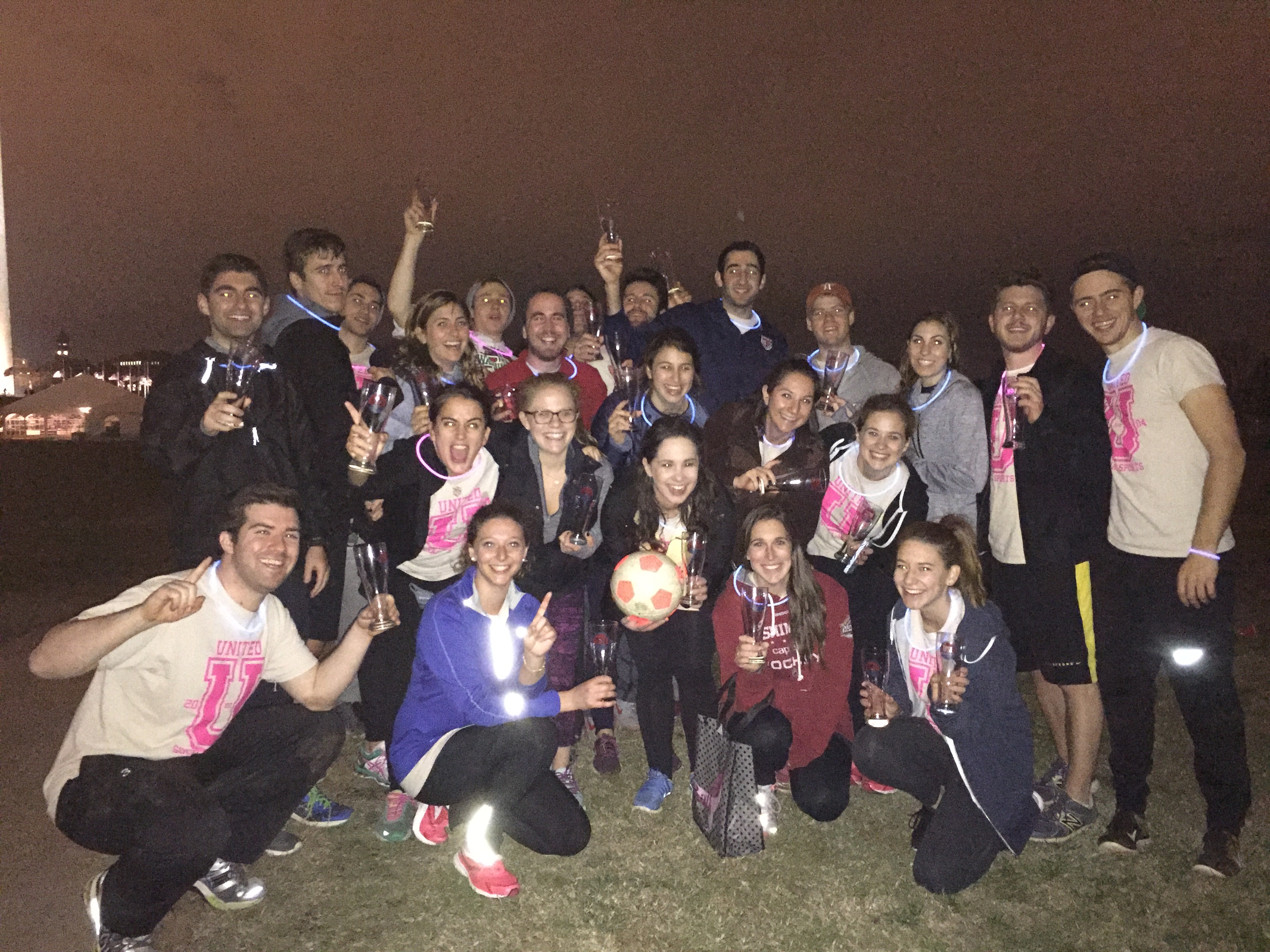 Who says we can't play kickball after the sun goes down?? Join us on the National Mall by the Washington Monument and play in the dark with neon gloware! All players play with neon glow bracelets and glow necklaces! The bases glow, the cones glow, the ball glows, everything GLOWS! We supply the GLOW, you supply the crazy! Season starts the September 23rd and goes for 6 weeks, with playoffs immediately afterward.